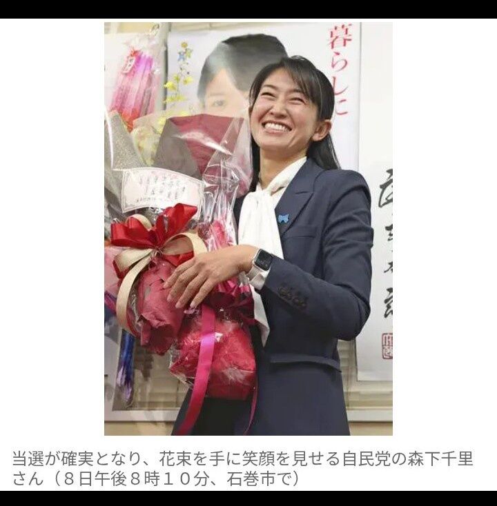 宮城4区では、自民党前議員の森下千里氏(44)が小選挙区での当選を確実にし、中道改革連合共同幹事長、安住淳氏(64)を破る大金星となった。